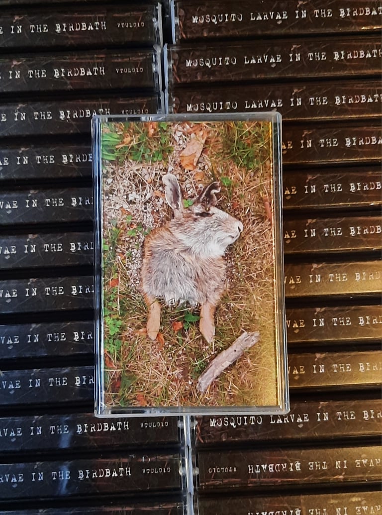"Resonating harmonium droning over chimes and twigs snapping. Sounds of frogs and insects at night near a marsh while bellows tuned to wetland breath morph from melodic to dissonant. Croaking deep tones creaking, sounds of the earth gaping with a squish. Crop circle electronics oscillating in the distance and more field sounds rustle and peel. Can’t tell if part at the end of A side is a muffled voice singing or a pitched theremin but it’s a nice touch. Tape layout of seasonal detritus, and my favorite aspect is the foggy shell and case. I know feel of soaking wet Wisconsin air as something dances below the surface of standing water.